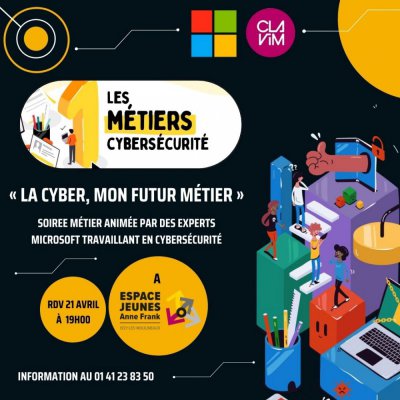 L’Espace Jeunes Anne Frank en collaboration avec Microsoft organise une soirée exceptionnelle intitulée « La Cyber, mon futur métier », et animée par des experts Microsoft travaillant en cybersécurité.